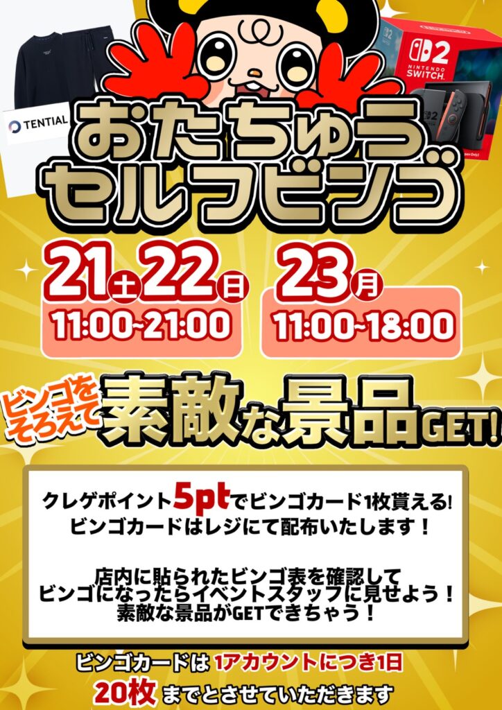 おたちゅうセルフビンゴ開催‼️ 開催期間2月21日(土)•22…