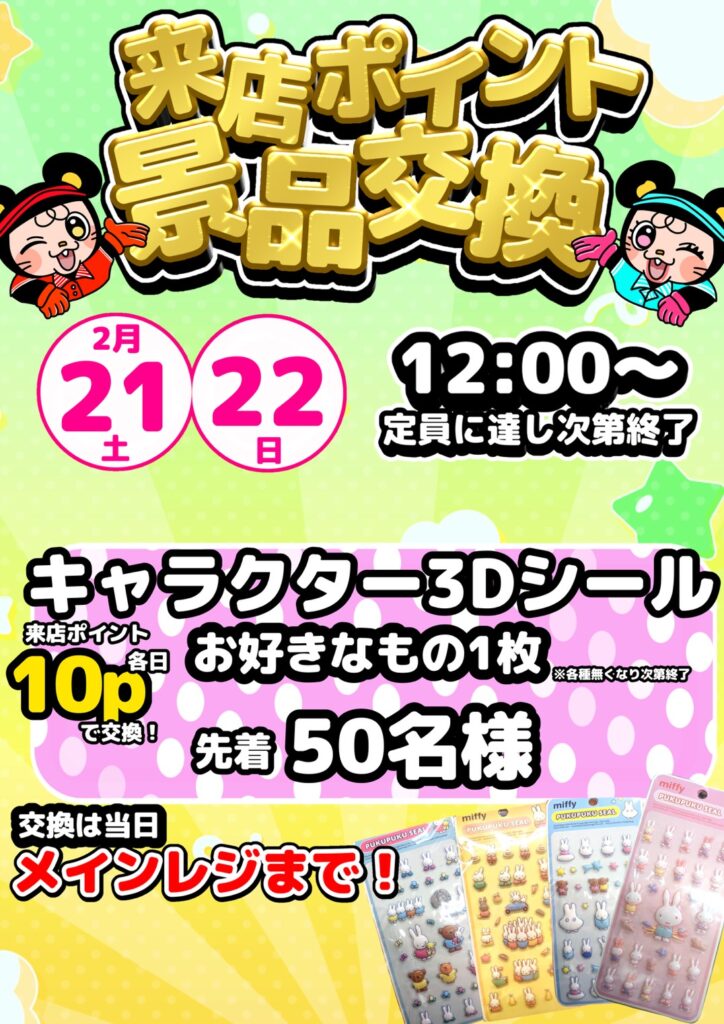 来店ポイント景品交換開催‼️★ 開催期間2月21日(土)・22…