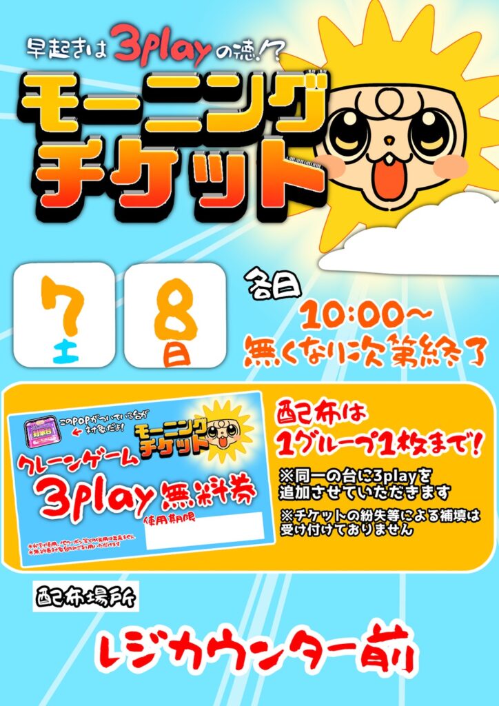 モーニングチケット配布‼️ 開催期間3/7(土)•3/8(日) モ…