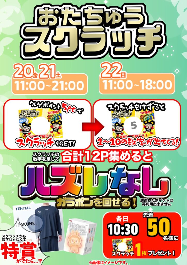 おたちゅうスクラッチ開催‼️ 開催期間3/20(金)21(土) 11…