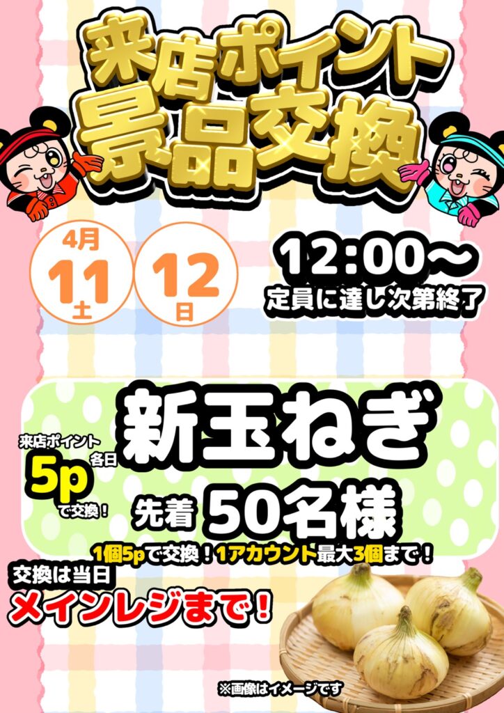 来店ポイント景品交換開催‼️ 開催期間4月11日(土)・12日…