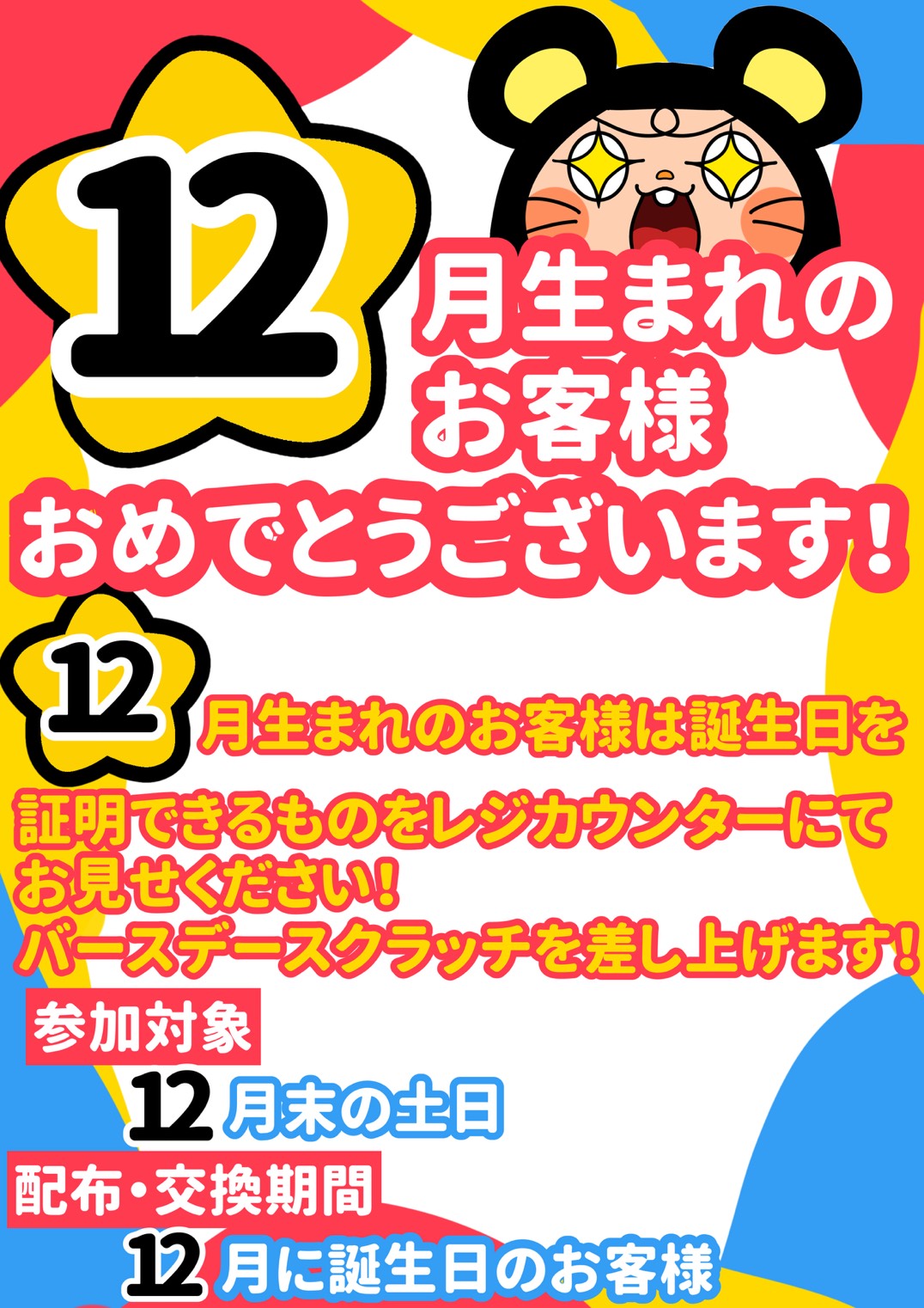 【12月27日(土)・28日(日)】バースデースクラッチ12月開催‼️ イベント 2025年12月27日 バースデースクラッチ12月開催‼️ 開催期間12月27日(土)・28日(日) 参加対象 12月生まれのお客様! お誕生日を証明できるものをお持ちになってレジまでお越しください!素敵なプレゼントが当たるかも…? Post Views: 10