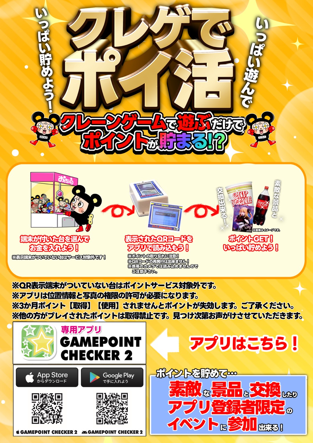 クレーンゲームで遊ぶだけでポイント貯まる!? そんな驚きのお知らせです!!